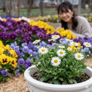 - 幼苗の管理: 発芽した幼苗は、そのまま育てて翌年の開花を担わせるか、もし密集しているようであれば、ノースポールの移植に強い性質を利用して、適切な株間(20~25cm程度)を空けて植え替える調整を行いましょう。この調整が、翌春の株の群れを防ぎます。