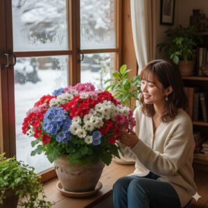 理想的な温度帯($15^\circ\text{C}$〜$25^\circ\text{C}$程度)を維持できる、エアコンの効いた涼しい部屋の、明るい窓辺(ただし、直射日光は避ける)で管理してください。これにより、株は熱ストレスから解放され、生理的な消耗を抑えることができます。室内管理中も、サーキュレーターなどで空気の流れを作り、風通しを確保することは忘れないようにしましょう。室内の涼しい環境で株の活力を維持できれば、秋以降の再開花も期待できます。