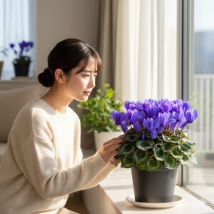 シクラメン栽培の成功を左右する二大要素は「温度」と「日当たり」です。水やりも大切ですが、まずはこの環境設定を間違えないことがスタートラインです。