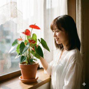 アンスリウムを枯らさないための長い旅、お疲れ様でした!この記事を通じて、アンスリウムの育て方で枯れる原因のほとんどが、実は「根っこの酸素不足」や「ちょっとした環境の不一致」から来ていることがお分かりいただけたかと思います。アンスリウムは決して難しい植物ではありません。むしろ、熱帯の過酷な環境を生き抜くための強靭な生命力を秘めています。私たちがほんの少し、彼らの目線に立って「居心地の良いジャングル」を再現してあげるだけで、彼らは最高のパフォーマンスで応えてくれます。毎日葉を眺め、その色やツヤに一喜一憂する…そんな丁寧な時間が、あなたのアンスリウムをより生き生きと輝かせてくれるはずです。あなたのお部屋に、またあの宝石のような鮮やかな花が咲き誇る日を、私も心から楽しみに応援しています!