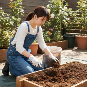 - 養分補給:その後、緩効性のゆっくり効く肥料を適量混ぜ込んでおきます。緩効性肥料の選択は、異なる植物が共存する寄せ植えにおいて、長期的に安定した栄養供給を確保し、急激な生育競争を防ぐための専門的な配慮です。