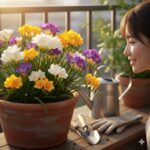 お花が終わった後のフリージアは、正直に言うと「枯れかけの草」のように見えてしまい、観賞価値がガクンと下がってしまいます。「お花がないのに葉っぱだけ置いておくのは邪魔だな」と、根元からバッサリ切ってしまいたくなる気持ち、本当によく分かります。でも、ちょっと待ってください!ここからが、来年の春の香りを決める「裏のメインイベント」の始まりなんです。お花に感謝しながら行う、アフターケアの極意をじっくりお伝えしますね。ここでの数ヶ月が、来年またフリージアに会えるかどうかを決定づけると言っても過言ではありません。