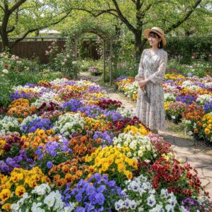そこに、F1ピカソ「シルバーブルー」のような濃いブルー系や、濃い紫のパンジーを「点」として配置すると、花壇全体がグッと引き締まり、エレガントな深みが出ます。暖色系の鮮やかさも、かえって際立つから不思議です。