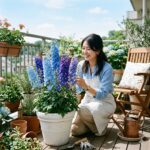 デルフィニウムやそれに似た花たちは、お庭やベランダの限られたスペースに「立体感」と「躍動感」を生み出す最高のアーティストです。特に都市部の狭いガーデンスペースでは、地面に広がるお花ばかりだと単調になりがちですが、垂直方向に伸びる花を取り入れることで、視線が上へと誘導され、空間を何倍も広く見せてくれる効果があります。寄せ植えを作るなら、背の高いデルフィニウムを「鉢の中央、または後ろ側」に配置して、全体の骨格(フォーカルポイント)にするのがプロっぽく見せる最大のコツです。
