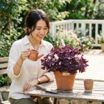 この植物の魅力は、単なる色合いだけではありません。花は淡いピンクや清楚な白で、その控えめな色が濃い紫色の葉をより引き立てるんです。日中は葉を大きく広げ、夜になると折り畳み傘のように下向きに閉じる「就眠運動」をはっきりと見せてくれるので、毎日眺めていても飽きませんね。育てやすさも一級品で、半日陰でも十分に育ちます。むしろ、あまりに強い直射日光に当て続けると、自慢の紫色の葉が焼けて色褪せてしまうこともあるので、明るい日陰や窓辺で育てるのがコツです。水やりも土の表面が乾いたらたっぷりとあげる程度でよく、初心者の方でも失敗が少ない優秀な植物と言えるでしょう。